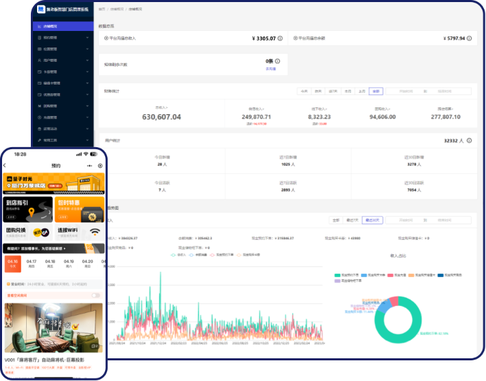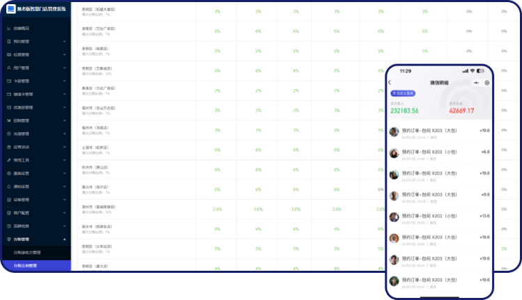 1、支持连锁品牌,自动分佣预消费、终端消费营业流水